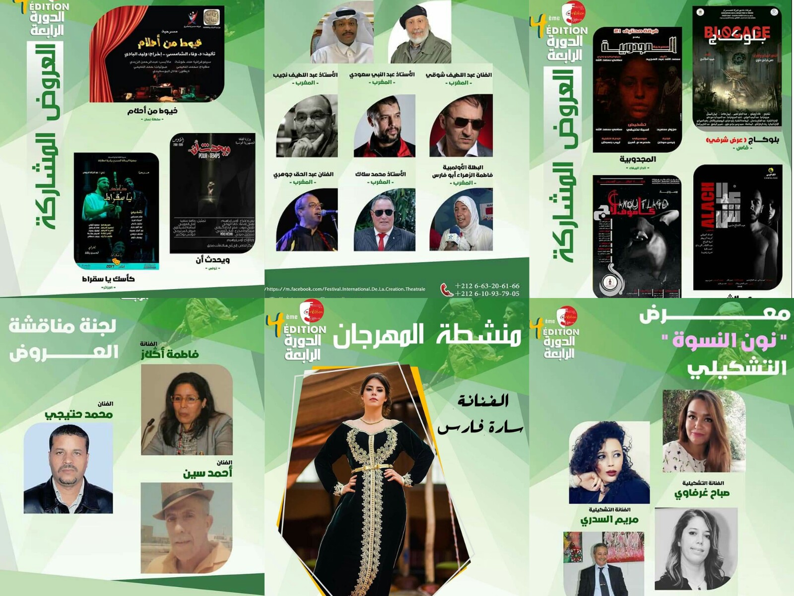 وأكد تفاحي، أن اللجنة التي سهرت على دراسة العروض و انتقائها، تضم ثلة من الأساتذة المسرحيين البارزين، وأن إدارة المهرجان توصلت بالنتائج النهائية للعروض المسرحية التي ستشارك في المسابقة الرسمية، والتي جاءت على النحو الآتي: مسرحية ” خيوط من أحلام ” لفرقة مسرح الشرق من سلطنة عمان، مسرحية ” يحدث أن ” لشركة آر أوس للإنتاج والتوزيع الفني من تونس، مسرحية ” كأسك يا سقراط ” لفرقة الرسالة للمسرح من الجزائر، مسرحية ” علاش ” لفرقة الكواليس للمسرح / تيط مليل من المغرب، مسرحية ” كاموفلاج ” لفرقة فوانيس للمسرح من ورزازات المغرب، مسرحية ” المجدوبية ” لفرقة محترف 21 / الدار البيضاء – المغرب.