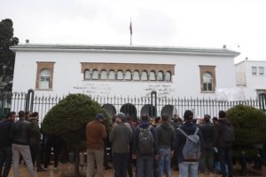 لم تمنع الاحوال الجوية و امطار الخير المتهاطلة على العاصمة السياسية الرباط، حاملو الشهادات من تنفيذ برنامجهم النضالي الداعي الى الاضراب يمتد لأسبوع كامل و وقفة احتجاجية امام مقر وزارة التربية والتكوين بالرباط، حيث عمد المحتجون الى الولوج الى داخل مقر الوزارة، وهو ما استدعى تدخل رجال القوة العمومية.