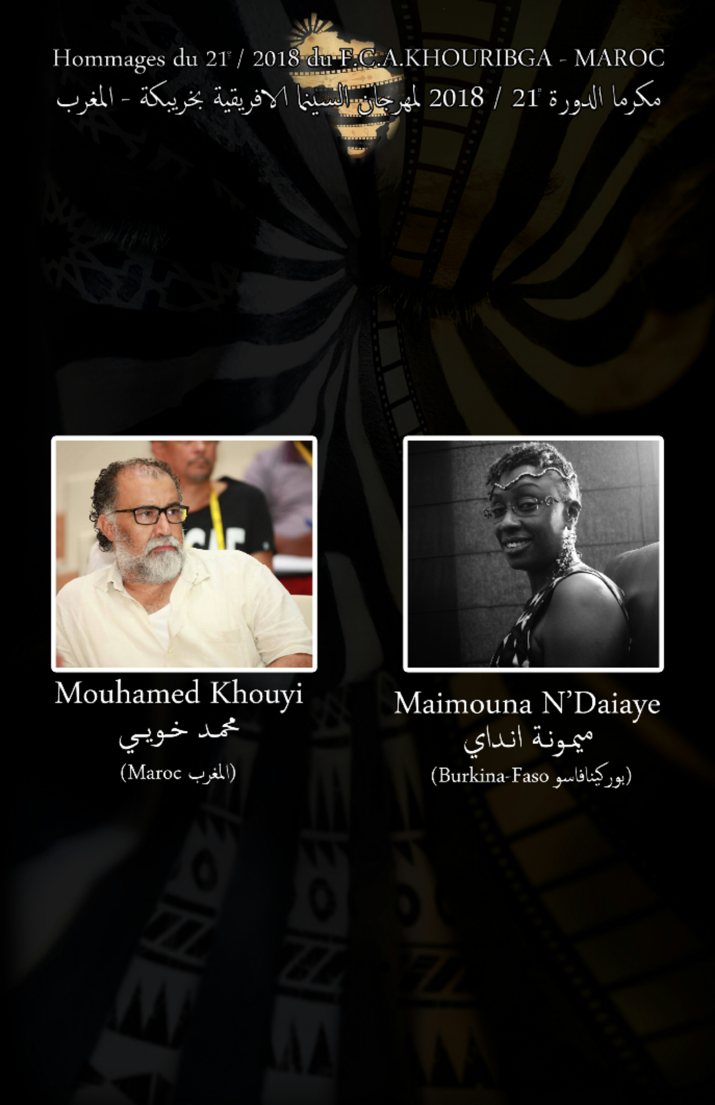 خلال الدورة 21 / 2018 لمهرجان السينما الافريقية بخريبكة  سيتم تكريم وجهان سينمائيان من المغرب : المشخص محمد خيي والمشخصة والمخرجة البوركينابية ميمونة انداي .