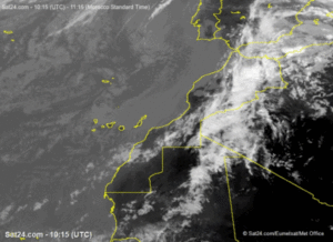 كما سيلاحظ ظهور سحب غير مستقرة شيئا ما بمرتفعات الأطلسين الكبير و المتوسط، و أقصى الجنوب و الريف وشرق المملكة مع إمكانية نزول قطرات مطرية متفرقة و رعد، فضلا عن انتشار سحب منخفضة بالواجهة المتوسطية و بالشمال الغربي مصحوبة بأمطار جد خفيفة صباحا .