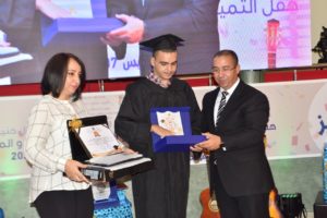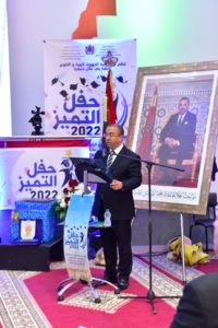 و اختتم الحفل بتوزيع جوائز تشجيعية قيمة و شهادات تقديرية على تلميذات و تلاميذ من بين المتفوقين و المتفوقات في امتحانات البكالوريا – 2022، حيث تم تتويج الطالبة مروة نصير الحاصلة على أعلى معدل 18,13 على المستوى الوطني في امتحان نيل شهادة التقني العالي، و تتويج التلميذ وثيقي حمزة من المنظمة العلوية لرعاية المكفوفين ببني ملال الحاصل على أعلى معدل 15,82 في فئة التلاميذ في وضعية إعاقة، و التلميذة شباكي هبة – علوم فيزيائية، بثانوية الداخلة التأهيلية بخريبكة، الحائزة على أعلى معدل في القطب العلمي (19,03)، و التلميذة بوكاري سلمى- علوم الاقتصاد- بثانوية عبد الله كنون التأهيلية بخريبكة، الحائزة على أعلى معدل بالقطب التقني (18,71)، و التلميذة بوصحيب وصال- آداب بثانوية الحسن الثاني التأهيلية ببني ملال، الحائزة على أعلى معدل في قطب الآداب (17,98)، و العسري الحسين بثانوية أم الربيع بخنيفرة (أعلى معدل بقطب المسالك المهنية 15,97)، و التلميذ البكالي عبد الصادق بثانوية تيفاريتي التأهيلية (أعلى معدل بقطب التعليم الأصيل 13,91).